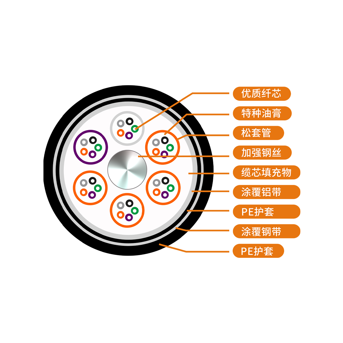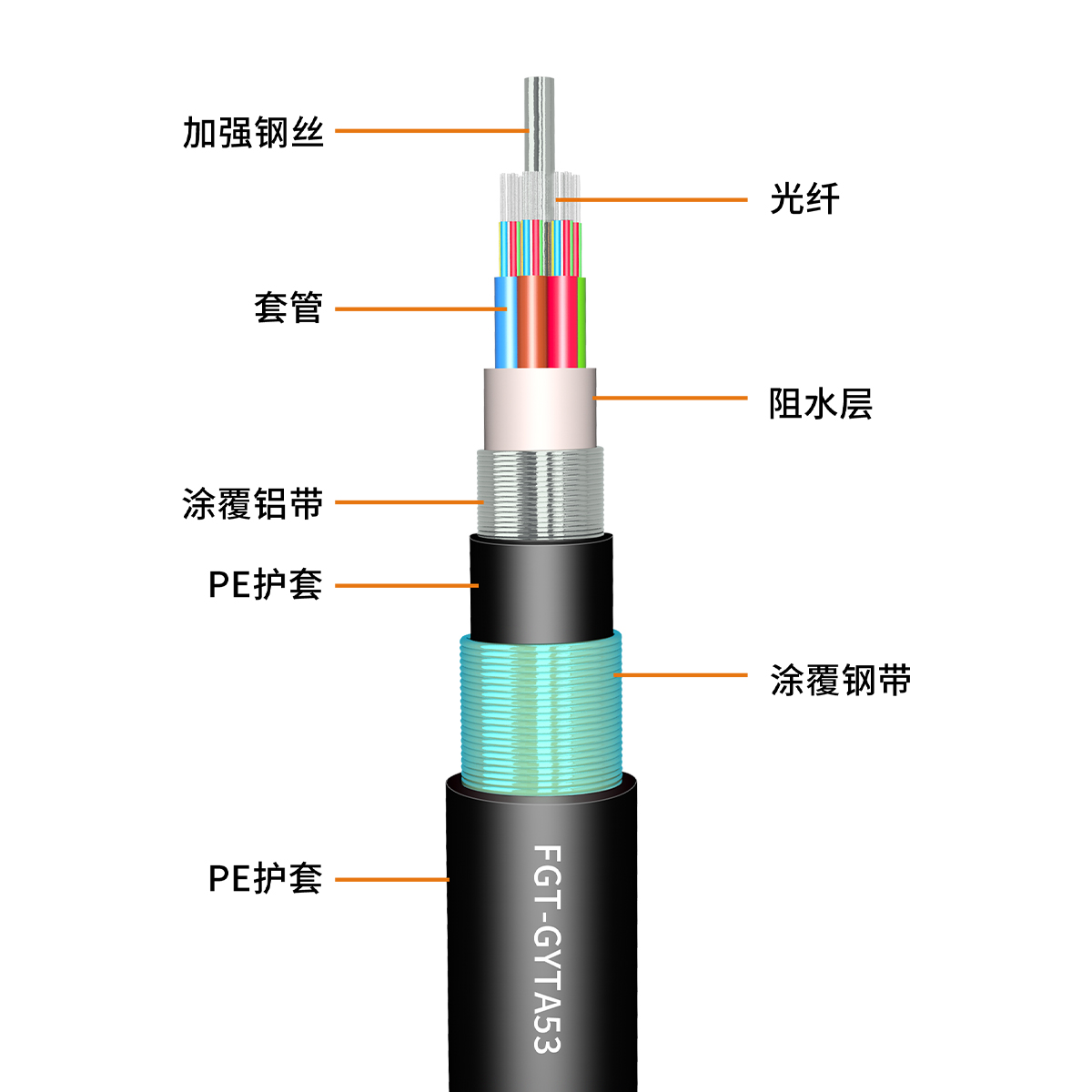 FGT 層絞式系列光纜,GYTS53/GYTA53光纜,執(zhí)行標準:IEC 60793YD/T 901ISO/IEC 11801ANSI/TIA-568.3-D,產(chǎn)品達到國內(nèi)先進水平